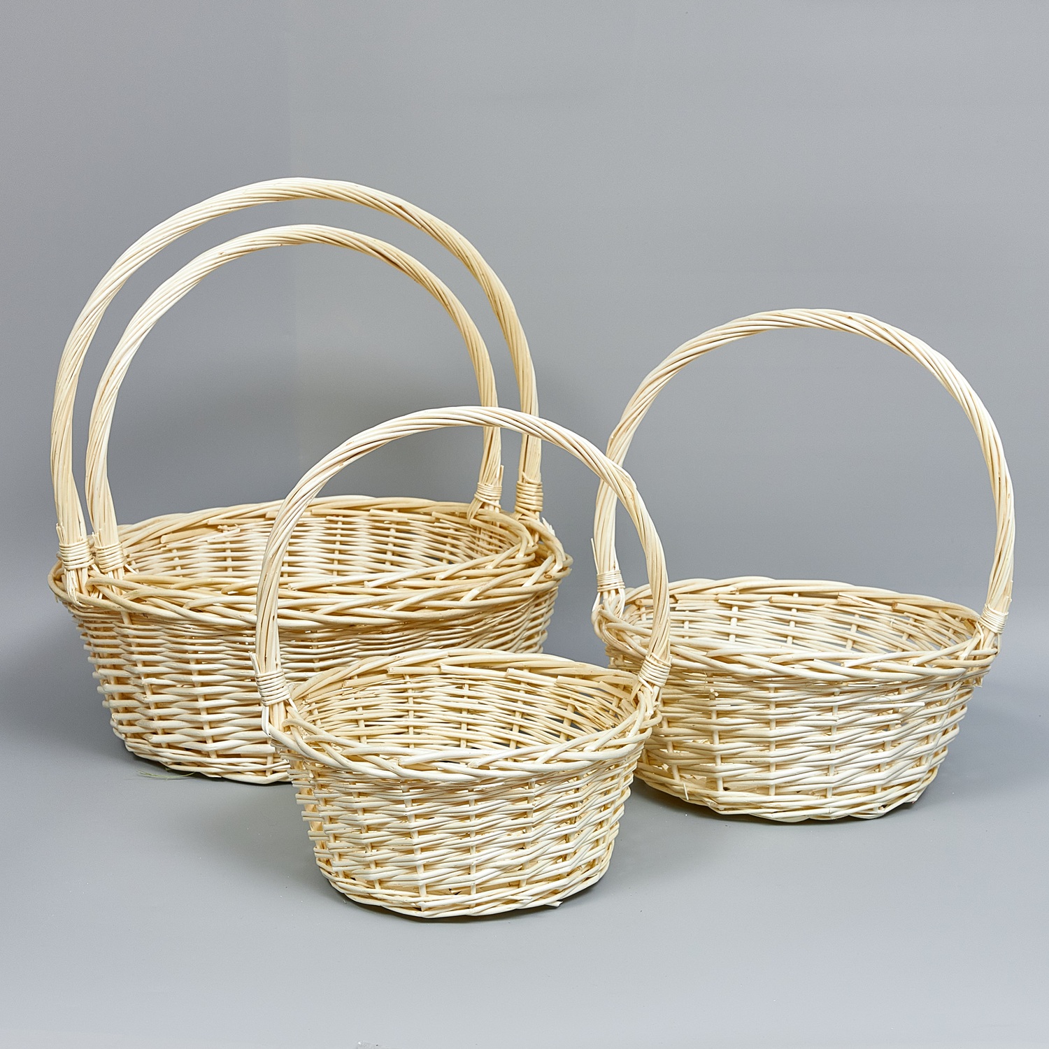 Корзины из ивы 45*45, 41*41, 38*38*15, 33*33*13см, 4шт, круг,натуральный