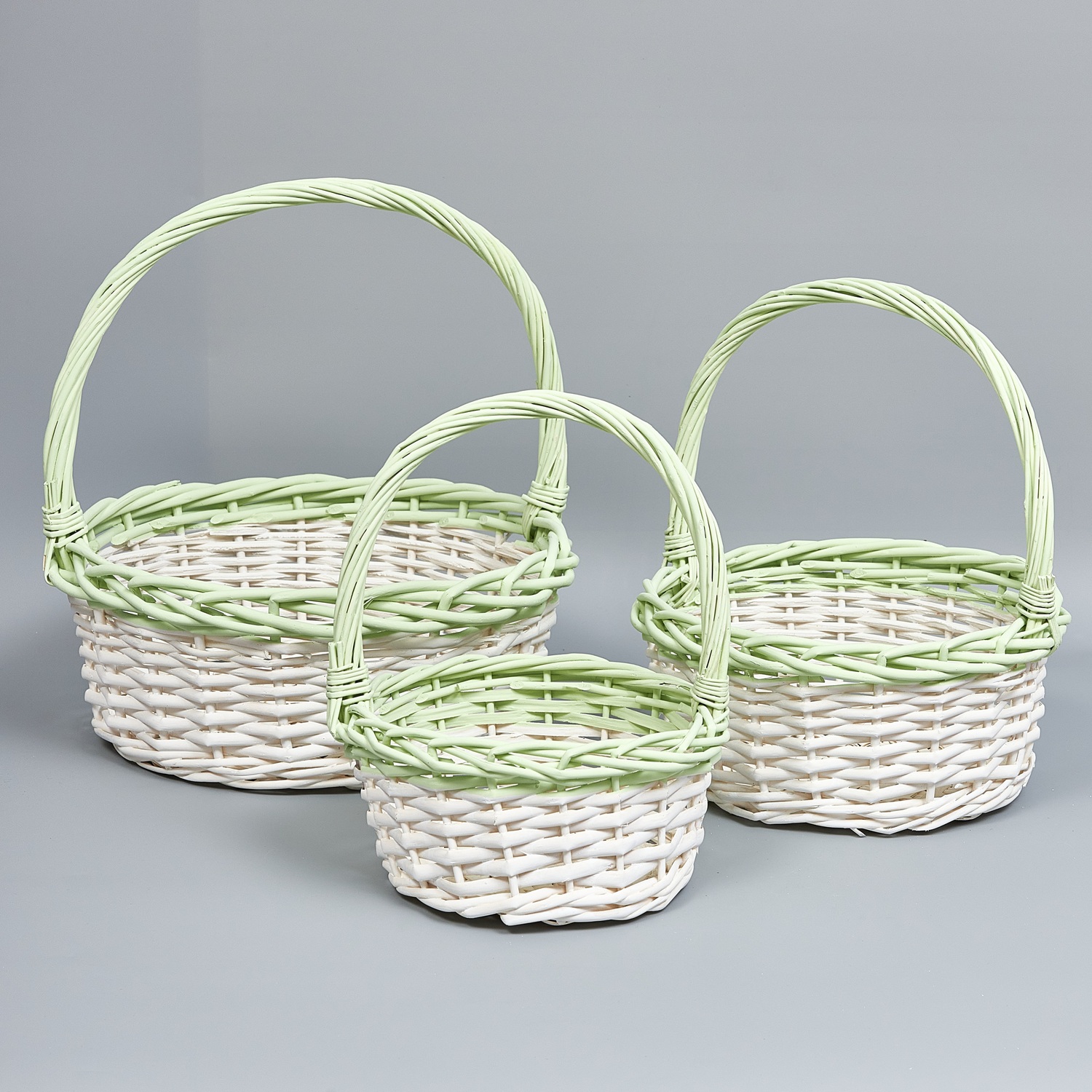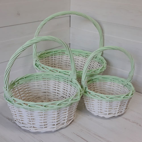 Корзины из ивы 36*14*39, 29*12,5*33, 22*11*28, 3шт, круг, белый/зеленый