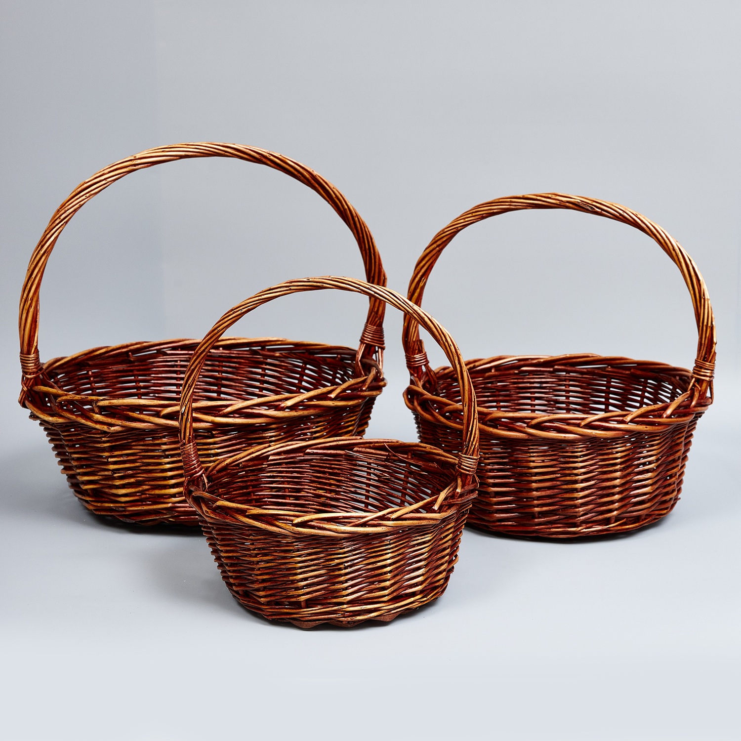 Корзины из ивы 41*41*16*41, 34*34*14*36, 27*27*12*31, 3шт, круг, коричневый