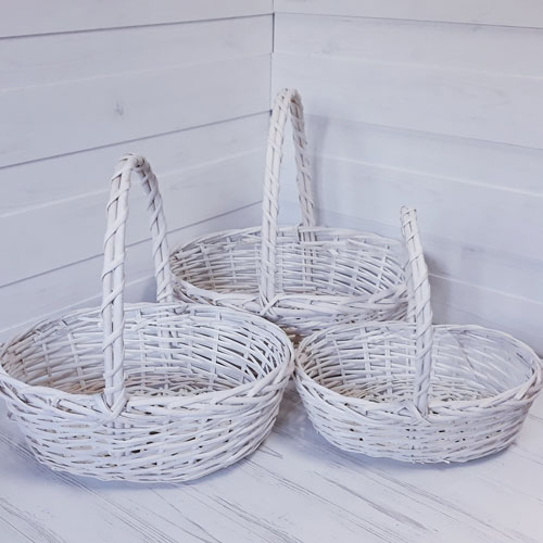 Корзины из ивы 44*33*14*40, 38*28*12.5*35, 32*23*11*30, 3шт, овал, белый