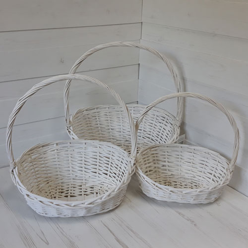 Корзины из ивы 44*34*10*18*44, 38*29*9*16*39, 32*24*8*14*34, 3шт, овал, белый