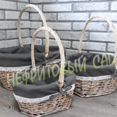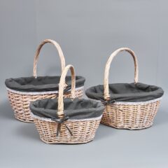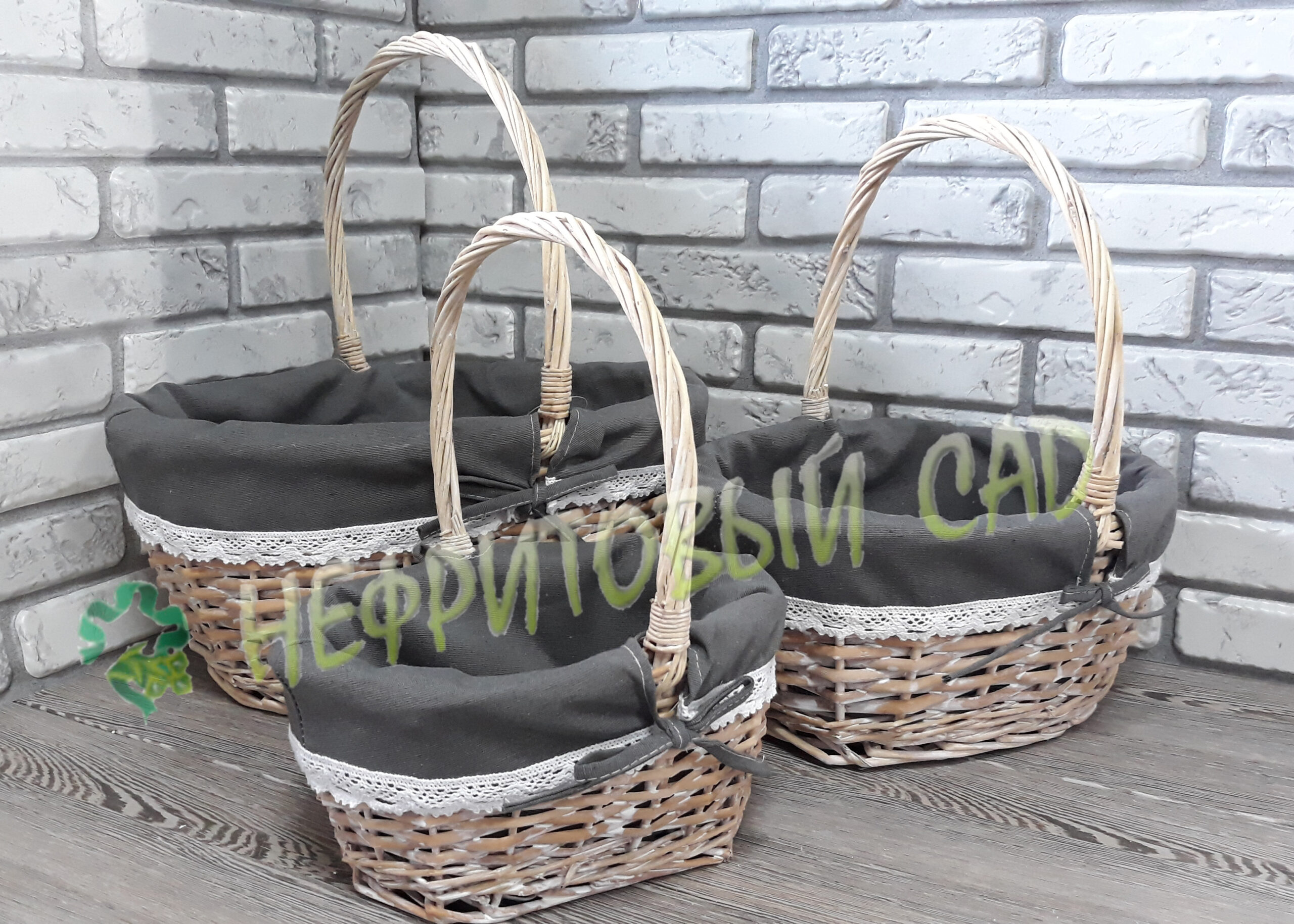 Корзины из ивы 46*37*20/43, 39*31*17,5/38, 32*25*15/33, 3шт, овал, с тканью, натуральный