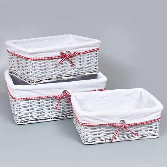 Корзины из ивы 46*35*18, 40*30*16, 35*25*14, 3шт, прямоугольник, белый