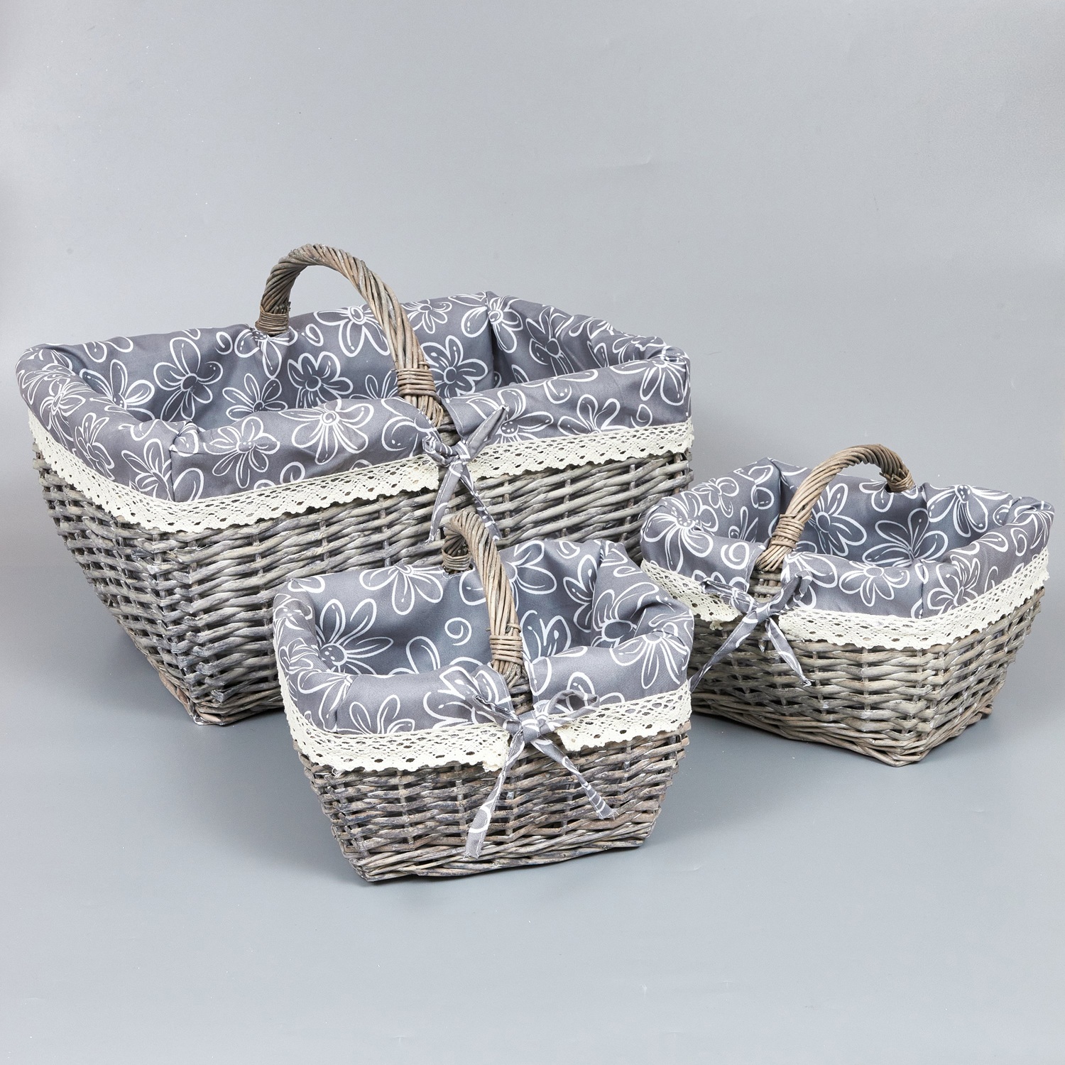 Корзины из ивы 44*35*22*33; 26*20*14*20; 26*20*14*20, 3шт, прямоугольник, серый