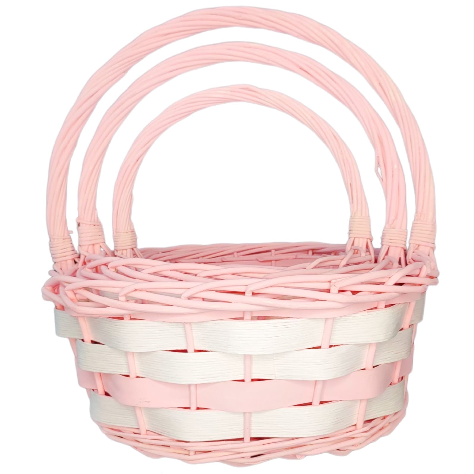 Корзины из ивы 35*35*15*37, 29*29*13,5*33, 23*23*12*28 см, 3шт, круг, розовый