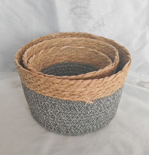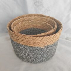 Корзины плетеные 25*15 B21, 20*14 B18, 18*12 B15, 3шт, рогоз/текстиль, серый