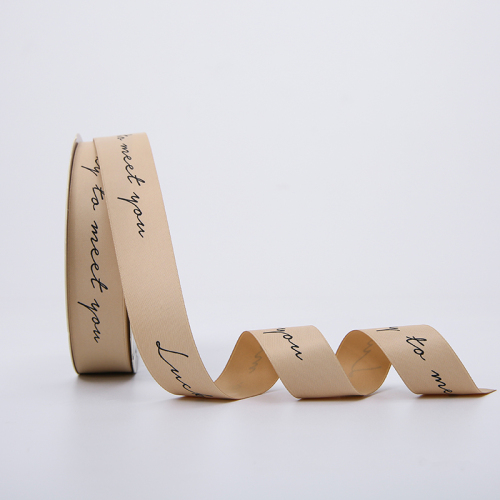 Лента атлас-сатин "Lucky to meet you" 2,5см х 20ярд бежевый