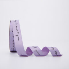 Лента атлас-сатин "Lucky to meet you" 2,5см х 20ярд лаванда
