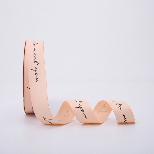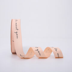 Лента атлас-сатин "Lucky to meet you" 2,5см х 20ярд розовый персик