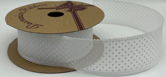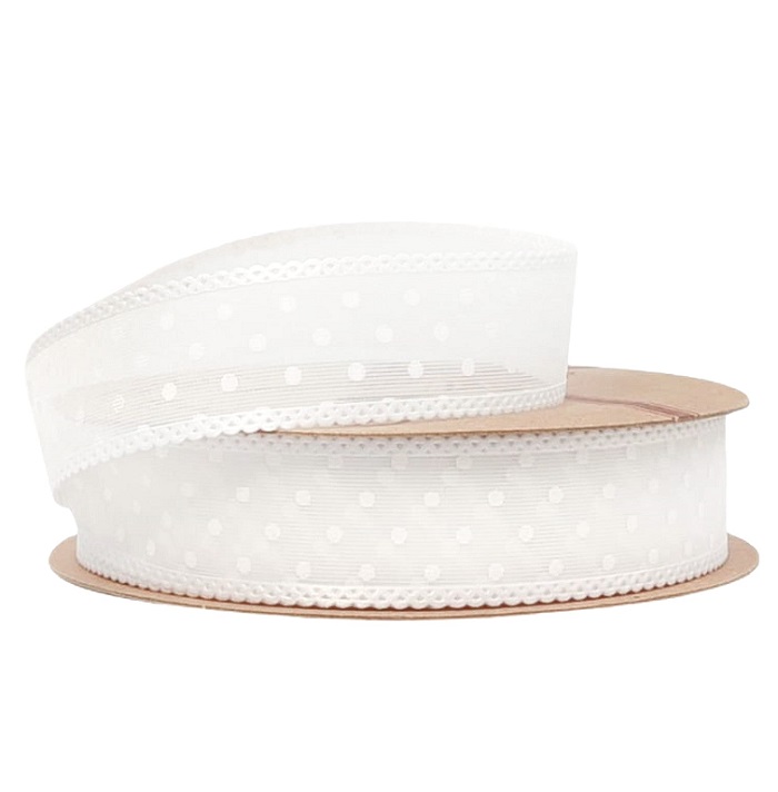 Лента декоративная "Горошек" 25mm*10 ярд белый