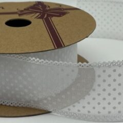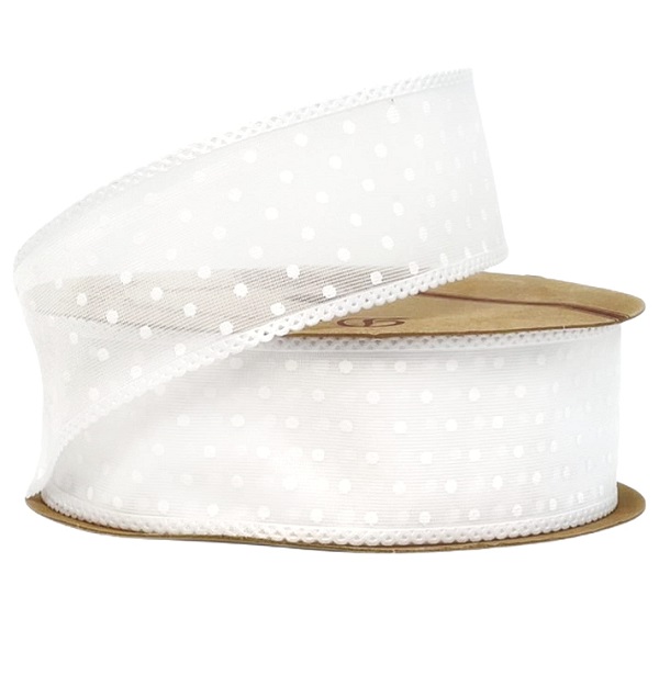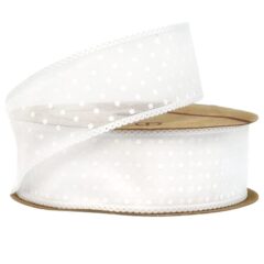 Лента декоративная "Горошек" 40mm*10 ярд белый