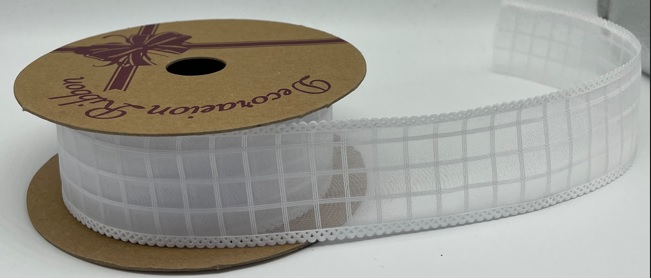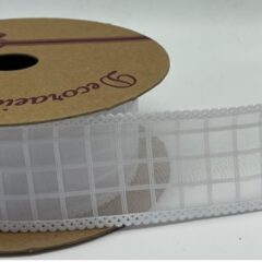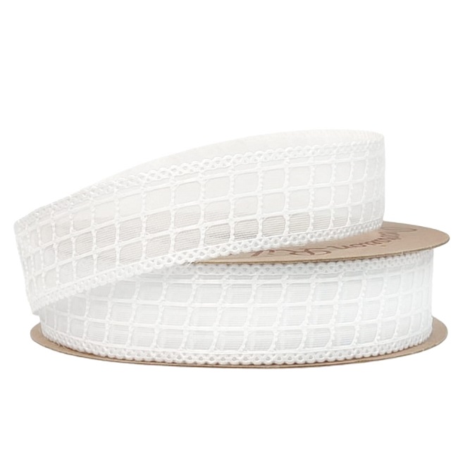 Лента декоративная "Клетка" 25mm*10 ярд белый