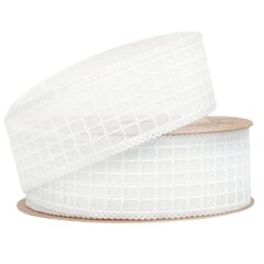 Лента декоративная "Клетка" 40mm*10 ярд белый