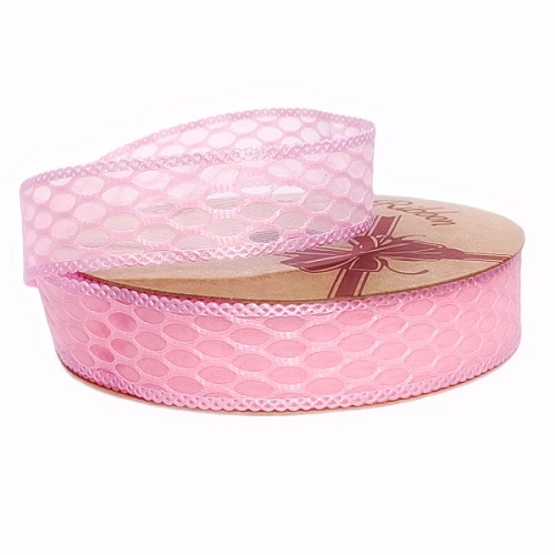 Лента декоративная "Соты" 25mm*10 ярд розовый