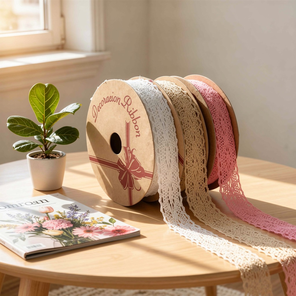 Лента хлопковая "Кружево", 25мм*10ярд, чайная роза
