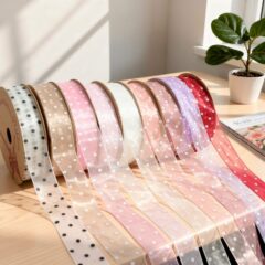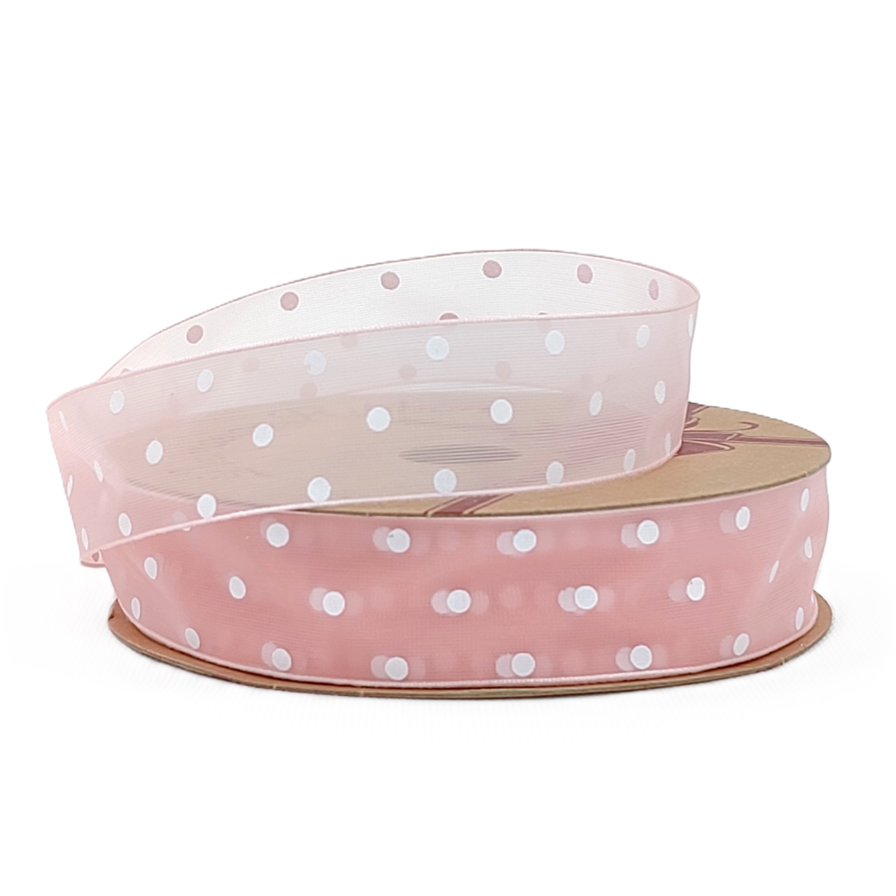 Лента органза "Горошек", 25мм*30ярд., пудра/белый