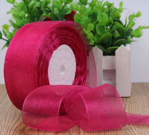 Лента органза 25мм*25ярд, малиновый (1028)