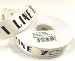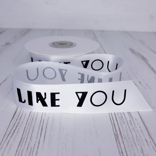 Лента атласная с принтом "I Like you", 25mmx25yds, цв. белый