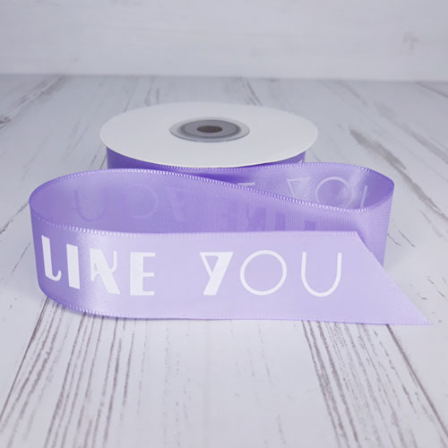 Лента атласная с принтом "I Like you", 25mmx25yds, цв. лиловый