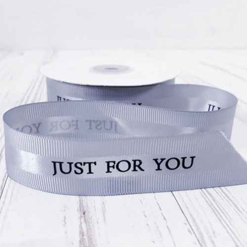 Лента атласная с принтом "Just for you", 25mmx25yds, цв.серебряный