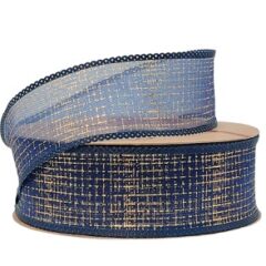 Лента дизайнерская с золотым напылением 40mm*10 ярд тёмно-синий