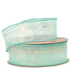Лента дизайнерская с золотым напылением 40mm*10 ярд ментоловый
