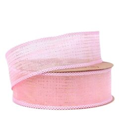 Лента дизайнерская с золотым напылением 40mm*10 ярд розовый