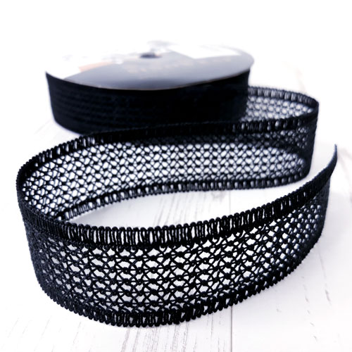 Лента хлопковая "Плетение", 28mmx20yds, цв.черный