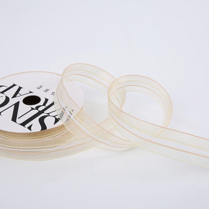 Лента органза "Линии" 2,5см*20 ярд, бежевый
