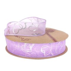 Лента органза "Перламутровые сердца" 25mm*10 ярд сиреневый