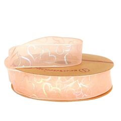 Лента органза "Перламутровые сердца" 25mm*10 ярд персиковый