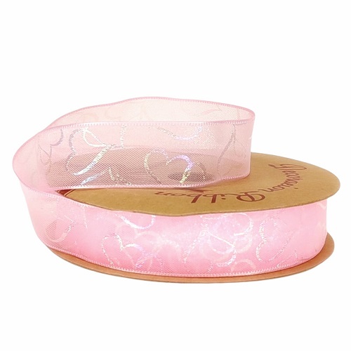 Лента органза "Перламутровые сердца" 25mm*10 ярд розовый