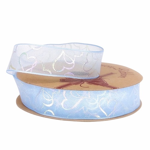 Лента органза "Перламутровые сердца" 25mm*10 ярд голубой