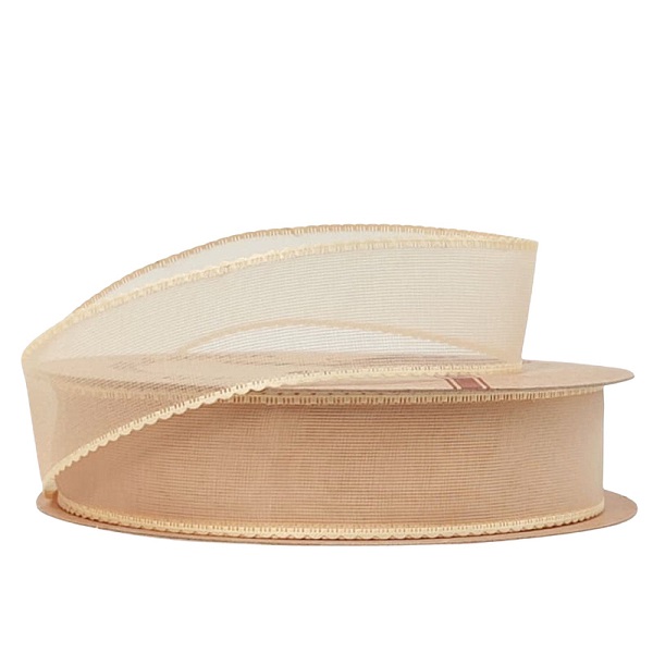 Лента органза"Кружевной кант" 25mm*10 ярд бежевый