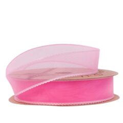 Лента органза"Кружевной кант" 25mm*10 ярд ярко-розовый