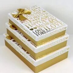 Набор коробок металлик "Happy" 3 шт, 29*21*9,5; 26*19*8; 23*17*6,5см, белый/золото