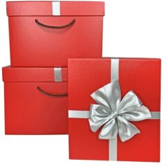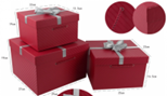 Набор коробок с серебряным бантом, 3шт, красные 29*27*19, 25*23*16.5, 22*19*13.5