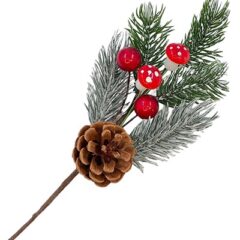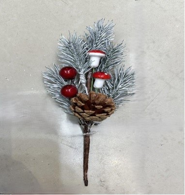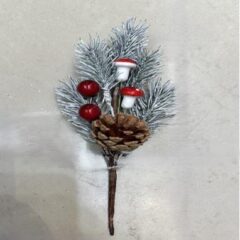 Ветка 20см. еловая с ягодами, грибами и шишкой заснеженная