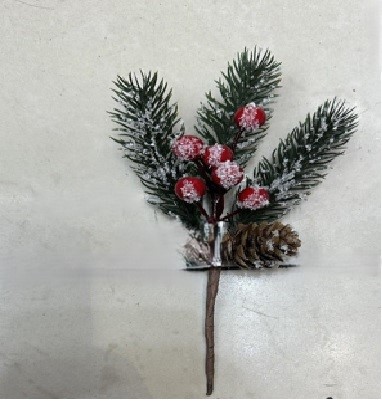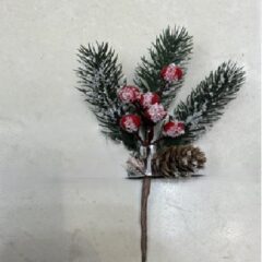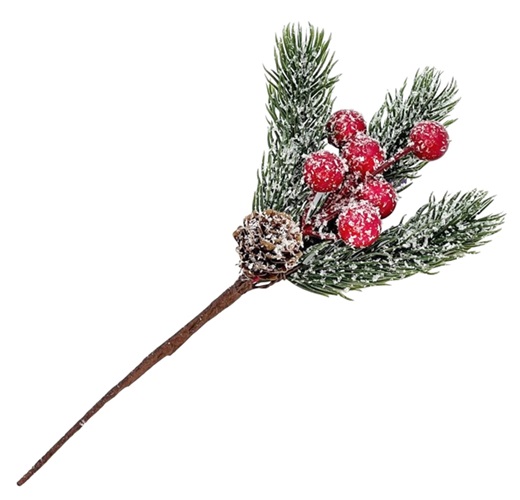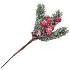 Ветка 20см. еловая с ягодами и шишкой заснеженная