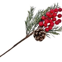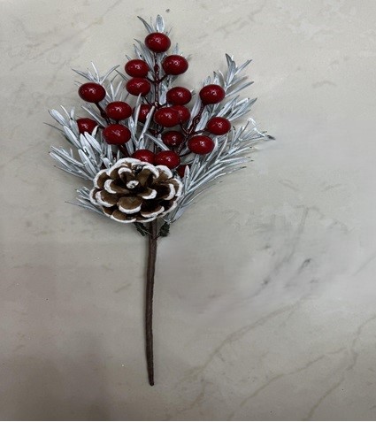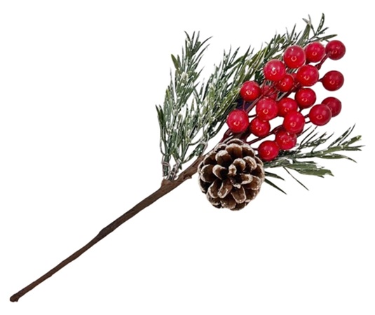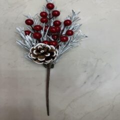 Ветка 30см. еловая с ягодами и с шишкой заснеженная