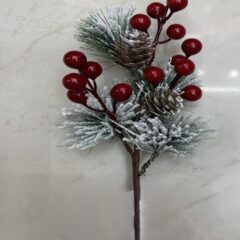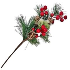Ветка 30см. с ягодами и 2 шишки заснеженная