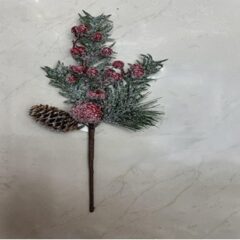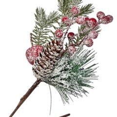 Ветка 36см. еловая с ягодами, яблоком и шишкой заснеженная