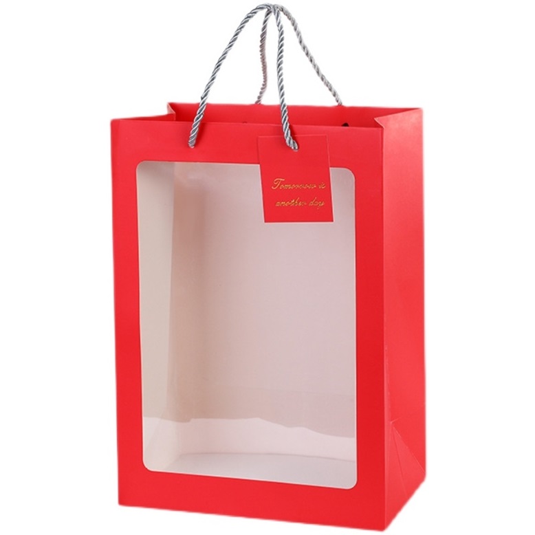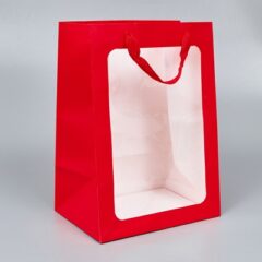 Пакет с окном, 25*18*35см, 10 шт/уп, красный