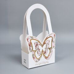 Сумочка подарочная "Бабочка" 18x9x36.5см-сборная, белый