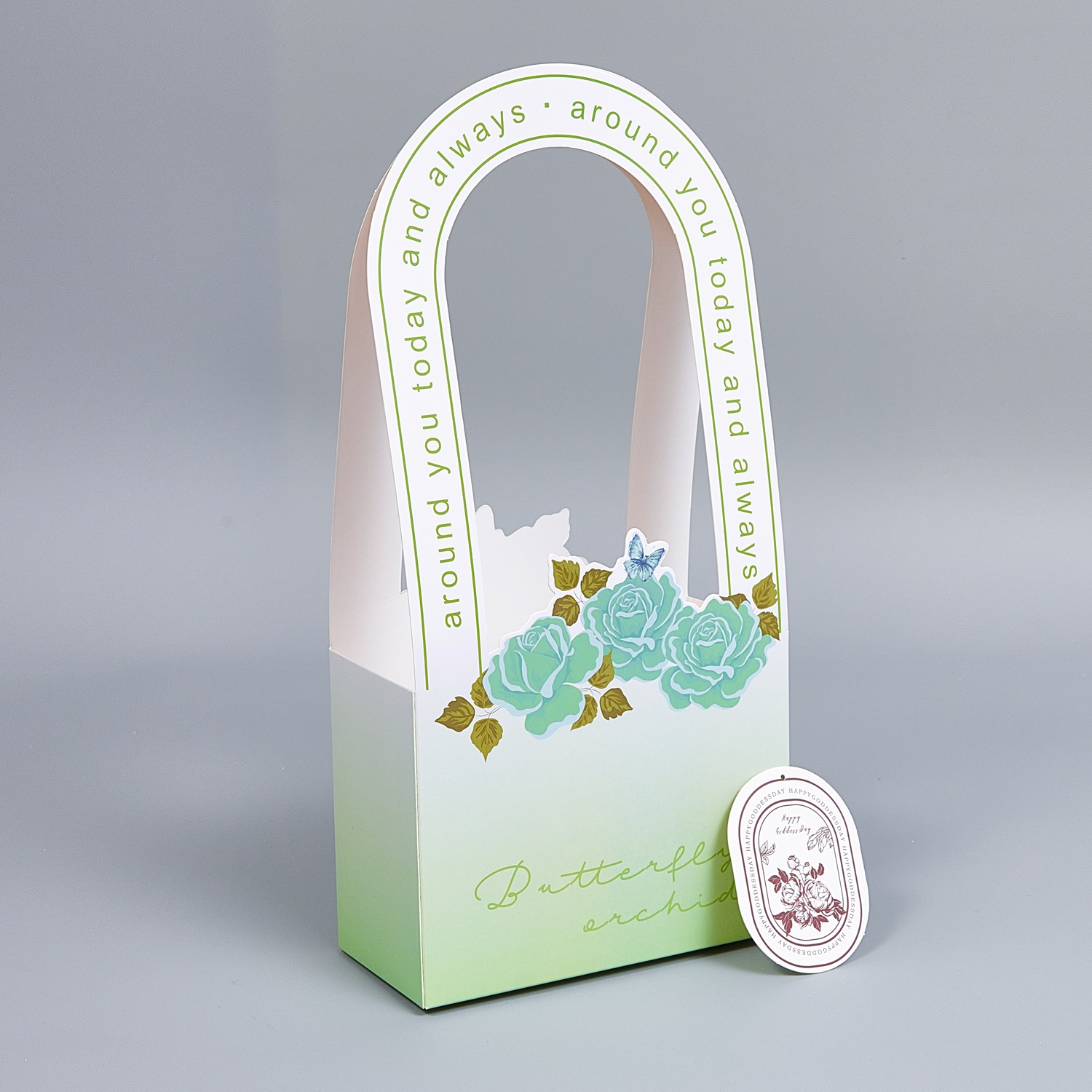 Сумочка подарочная "Цветочная фантазия" 16.5х7.5х34.5см-сборная, ментоловый
