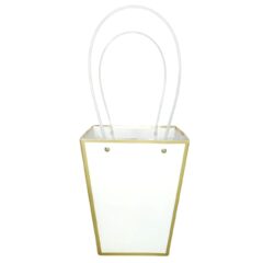 Картонный пакет с ручками, 17*11,5*20см, белый/золото