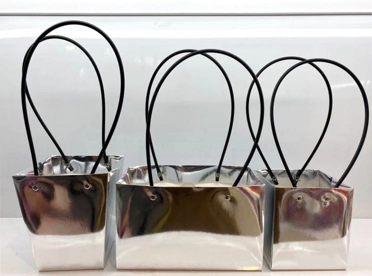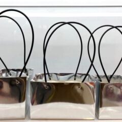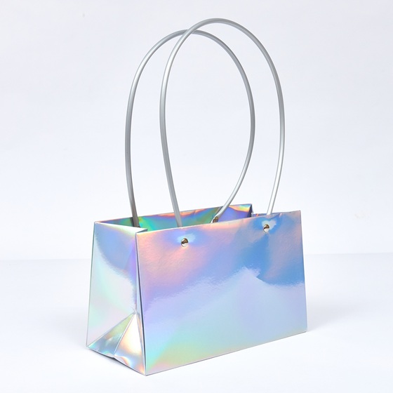 Картонный пакет с ручками, 22x10,5x13,5см, серебряный