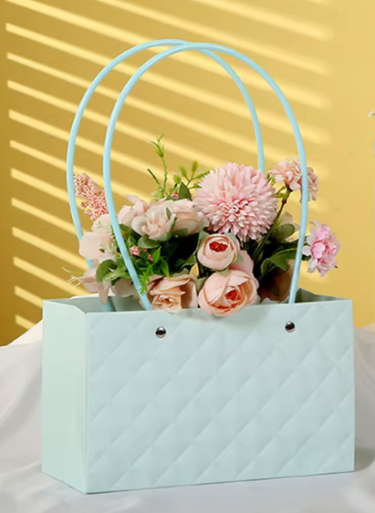 Картонный пакет с ручками "Ромбы", 22*10,5*13,5см, голубой
