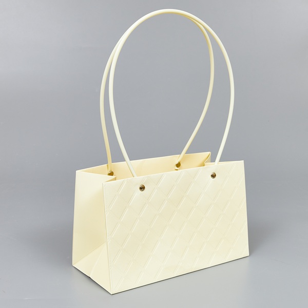 Картонный пакет с ручками "Ромбы", 22*10,5*13,5см, кремовый