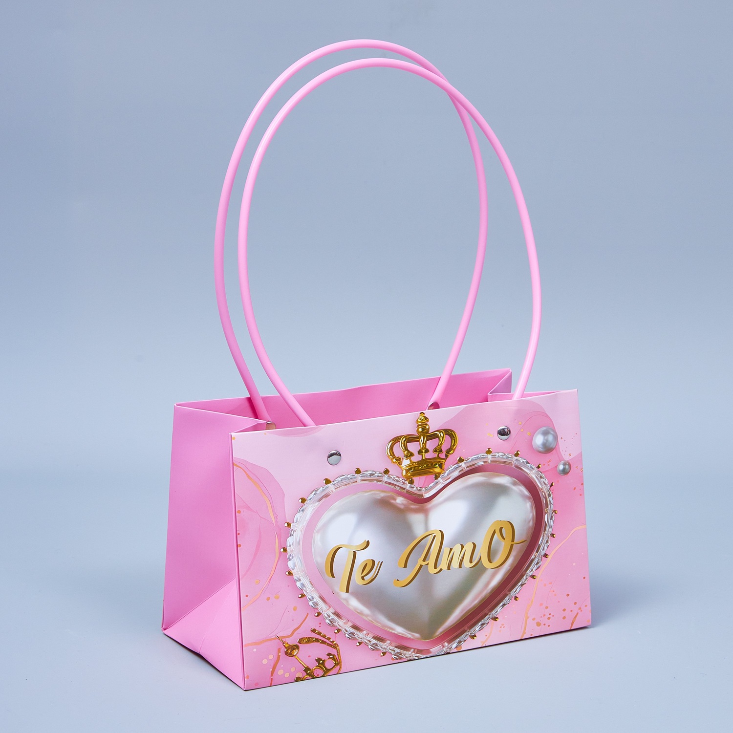 Пакет подарочный "Сердца" №1, 22*10,5*13,5см, розовый